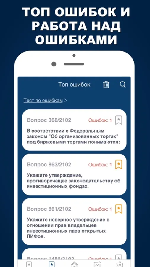 ► Топ ошибок - вопросы, в которых были допущены ошибки.