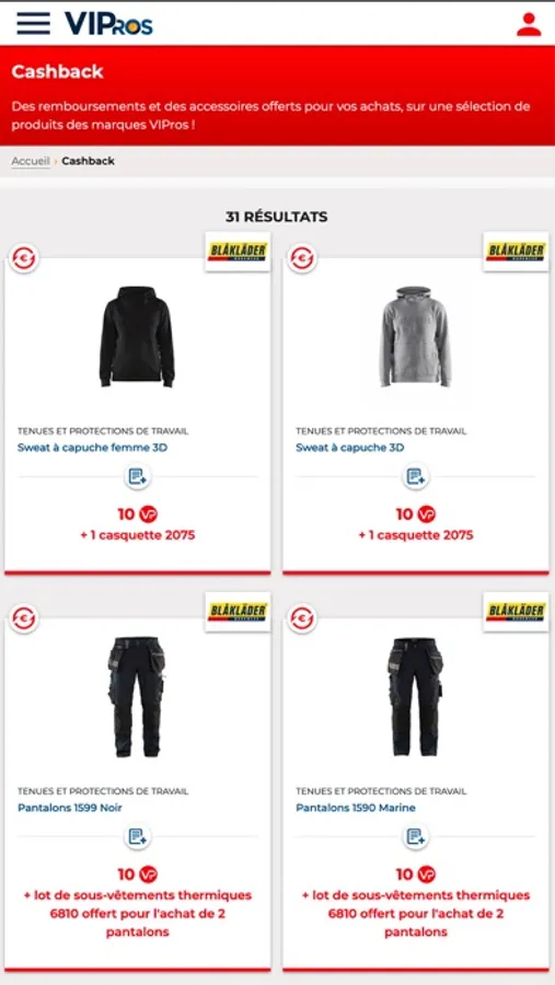 - Bénéficier de cashback sur vos produits préférez. Des remboursements et des accessoires offerts pour vos achats, sur une sélection de produits des marques VIPros.