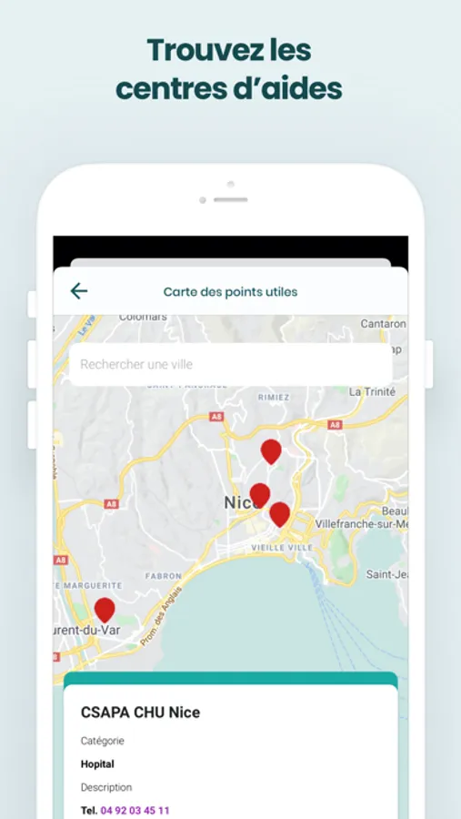 L'application Ethylot' Health vous permet de trouver les numéros utiles et les centres d'addictologie les plus proches de vous.