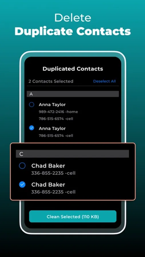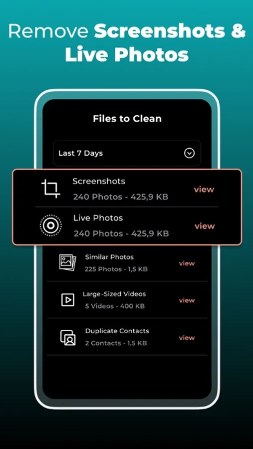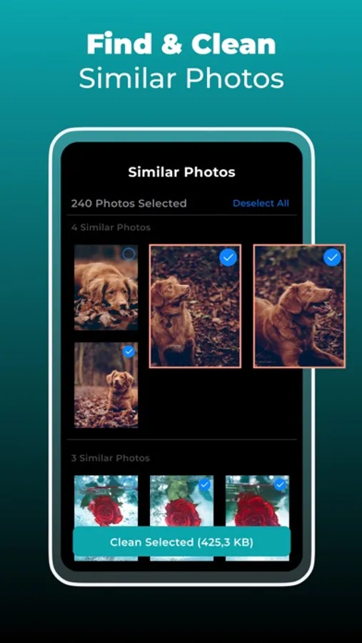 Clean your phone with the help of AI. Find similar photos, duplicate contacts and large sized videos, delete them with one tap!