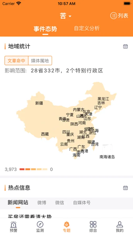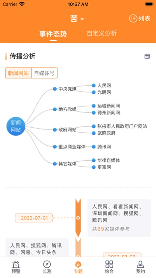 TRS网察大数据分析平台,简称网察(TRS NetInsight)。从网络舆情线索发现、实时预警、分析研判、综合报告等各个环节为用户提供全面、及时、准确的服务。聚合网络新闻、微博、微信、论坛、电子报、境外媒体等多渠道海量数据,以信息监测、态势感知、关系挖掘、事件追踪、传播分析、智库共享等为目标,解决跨舆论场的网络信息洞察、分析、研判。