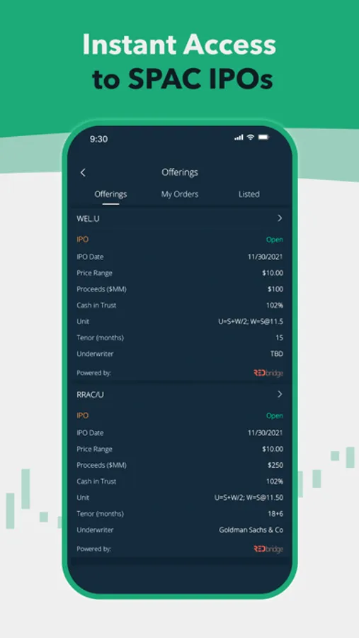 Get access to SPAC IPOs and execute SPAC unit separations, SPAC redemptions, and shareholder votes inside the app.