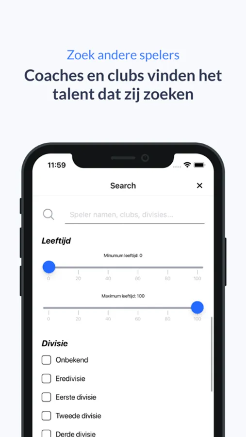 ● Zoek naar spelers, coaches en clubs