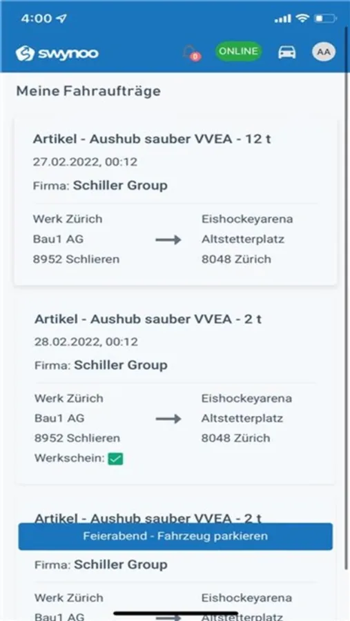 With the Swynoo app, driving jobs can be received and executed in a structured manner until the job is completed. Navigation can be activated to get to the desired destination safely and quickly. The delivery is signed directly via the Swynoo app. The works slip can also be photographed via the app so that it is immediately available to dispatch for checking after the trip has been completed.