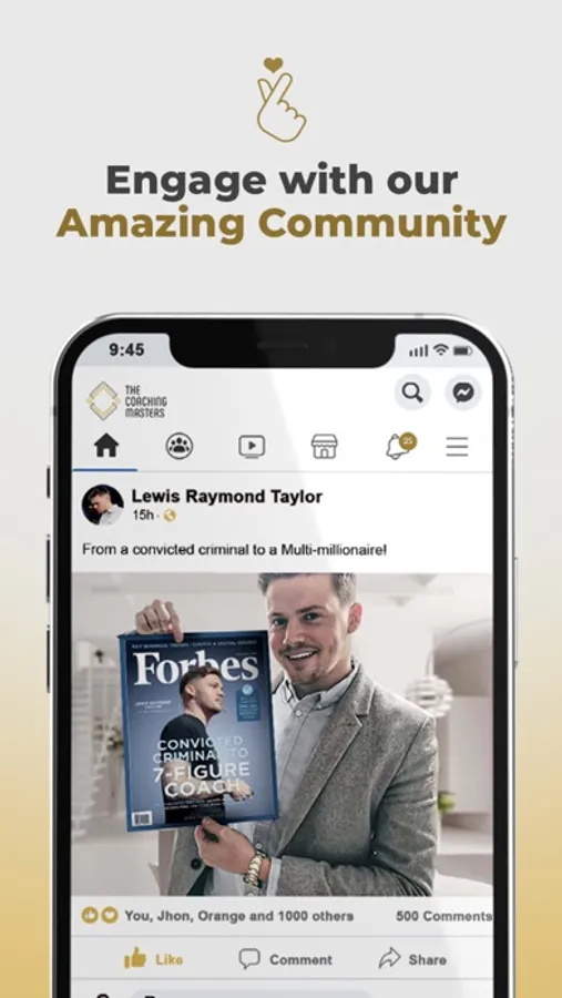 The Coaching Masters App allows you to learn, curate, and grow with other coaches from 71 countries around the world with our revolutionary, zero-algorithm, social media platform - allowing 100% of your posts to be shared with the coaching industry, without censorship or shadowbanning.