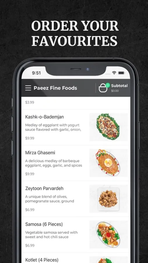 Download NOW, order food, satisfy your hunger, and benefit from Paeez Fine Foods Food Ordering App!