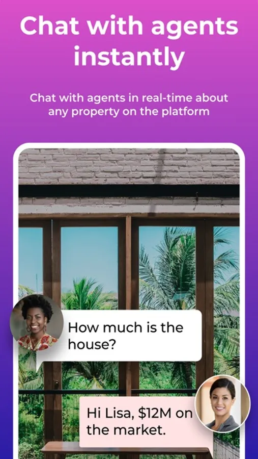 Users just have to click one button, to instantly chat with an agent. Users and agents can also share files in a fast and secure way. Agents can see chat messages per property.