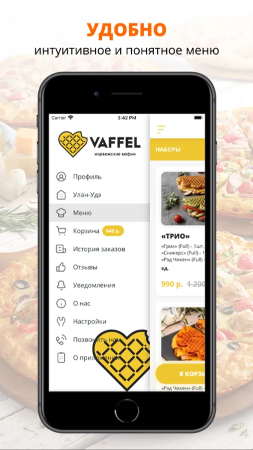 Приложение Vaffel — это удобный способ заказа еды домой или в офис! Мы готовим наши блюда из качественных свежих ингредиентов и доставляем еду быстро и бережно.