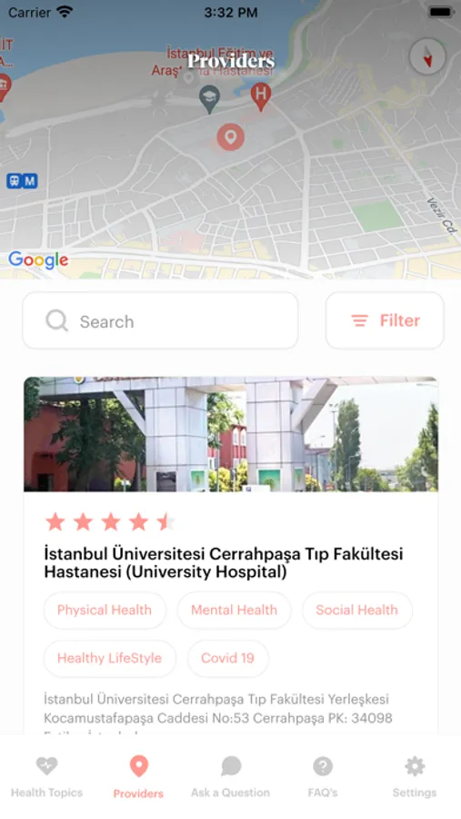 health-related institutions, hotlines, and other mHealth apps. Users can give feedback about the