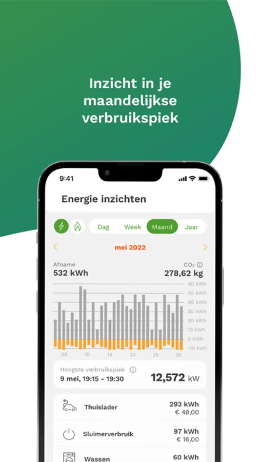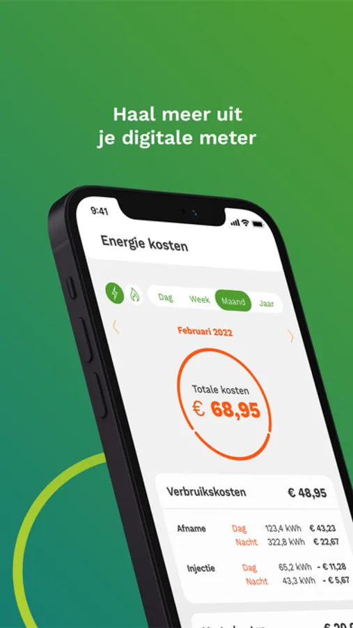 - Heb je een beter inzicht in je verbruik en kosten (voor elektriciteit en gas): per dag, week, maand en jaar.