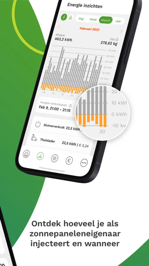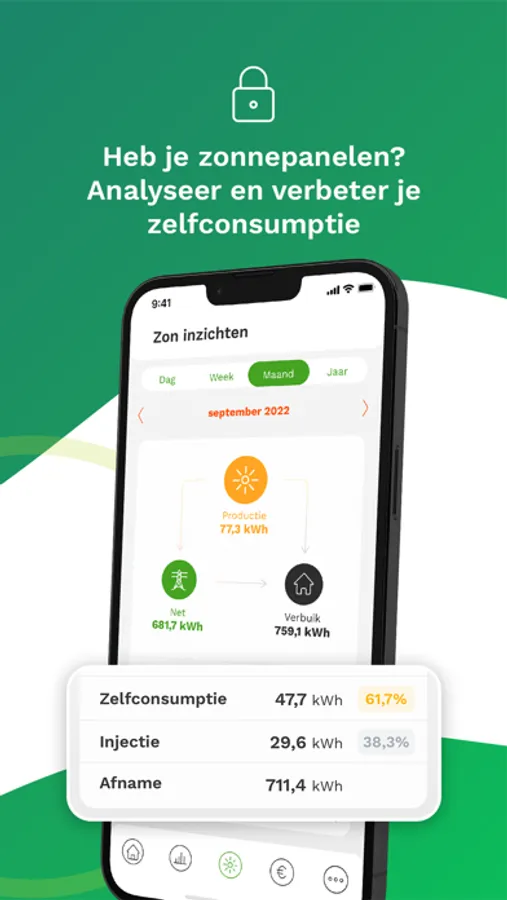 - Krijg je inzicht in de injectie, productie en zelfconsumptie van je zonnepanelen