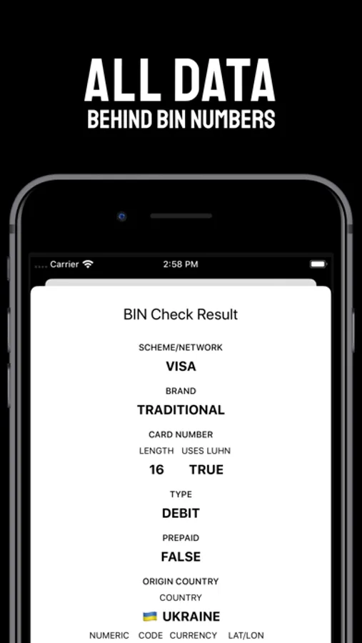 Use the app as card info finder, which will indicate what type of card and whether it is prepaid. Also, BIN checker will indicate the country and the bank, as well as provide contacts for communication with the bank.