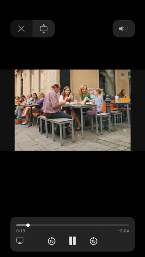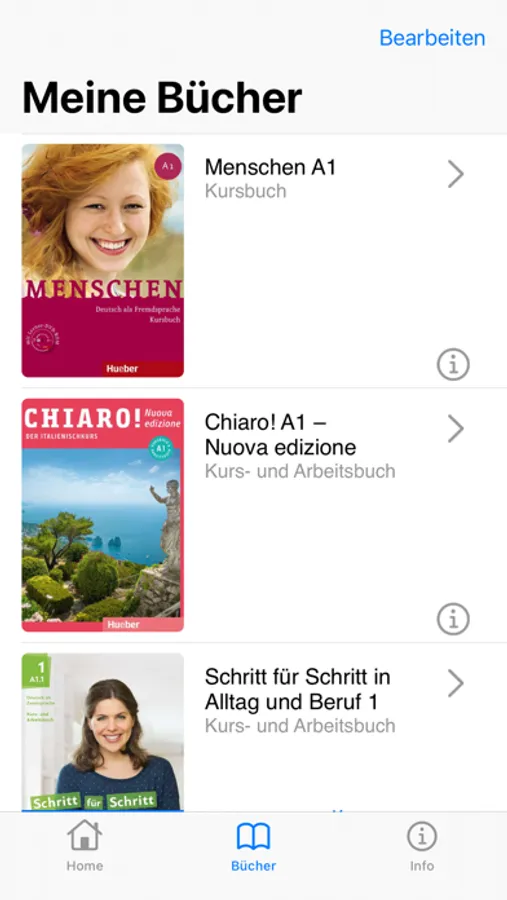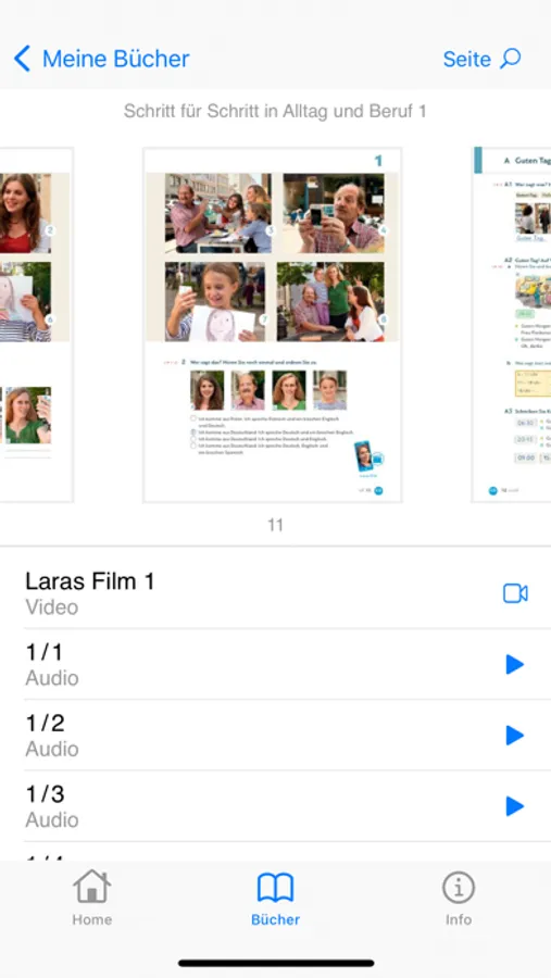 You can decide whether or not to save the video files (where available) on your device. Downloaded videos can be played at any time, even without access to the Internet. Media that is not downloaded will be streamed, for which the app needs Internet access. Even after downloading video files, you can change your mind at any time: Just go to “Books” and click on the info button to the right of the title.