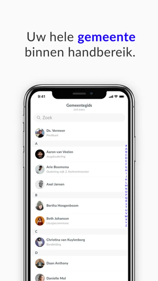 Wie zoekt er tegenwoordig nog een telefoonnummer op in het telefoonboek? Vrijwel niemand! Dankzij de gemeentegids feature is iedereen binnen uw kerkelijke gemeente terug te vinden. Snel berichten sturen, naar een adres navigeren of zien wat iemands rol in de kerk is? Met de digitale gemeentegids wordt het makkelijk.