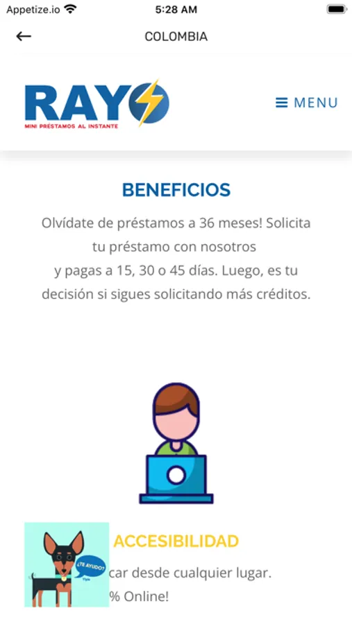 RAYO es una plataforma ideada para solucionar necesidades financieras ocasionales, nos especializamos en mini prestamos al instante, sin fiadores y en menos de 24 horas te depositamos.