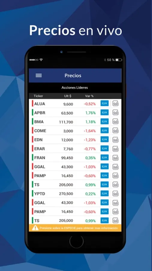 Precios en tiempo real y acceso a la información detallada de cada especie.