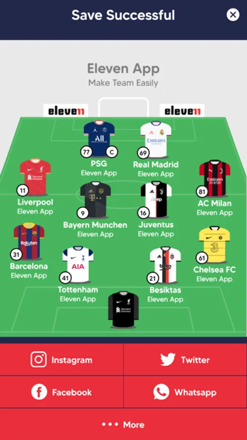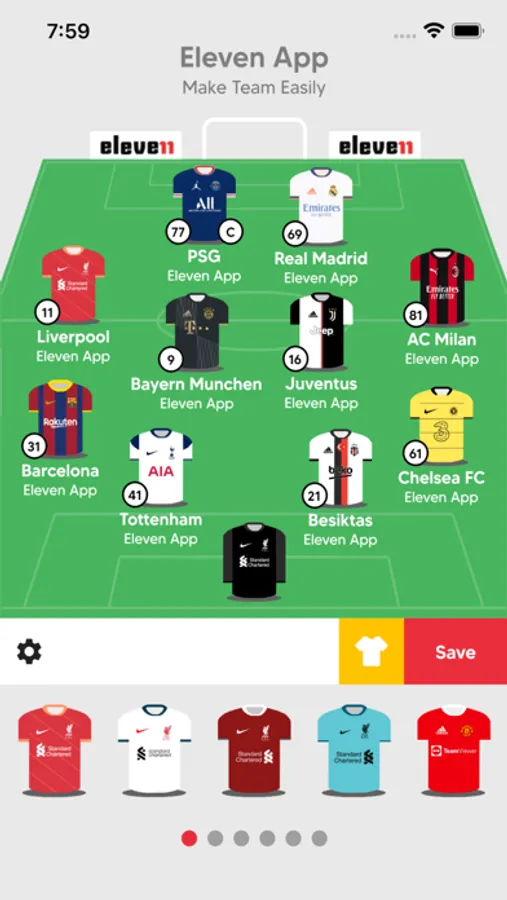 Using the Eleven application, you can create your desired team squad by using the jerseys of the teams of the most prestigious leagues we have prepared for you.