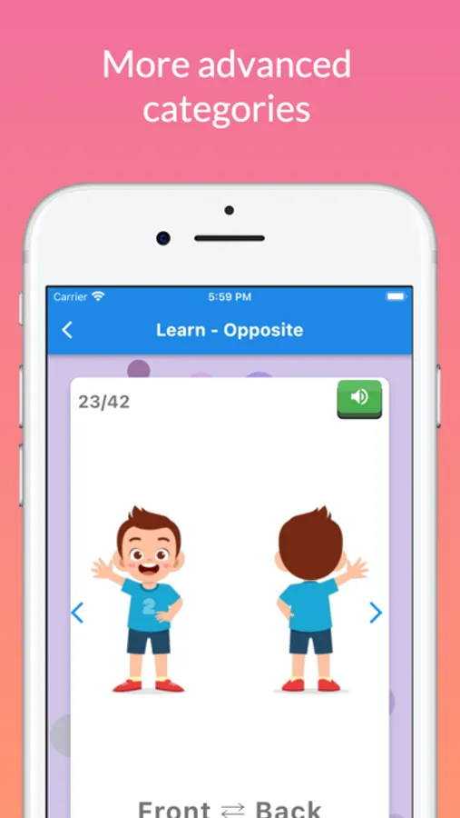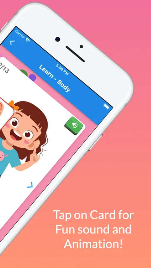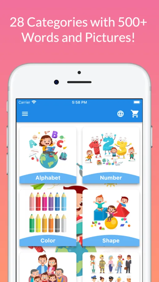Learn First English features 28 categories that are suitable for all ages and have over 500 words and pictures. The App is easy and safe to use Select a category to review flashcards and tap on the card for fun sound and animation!