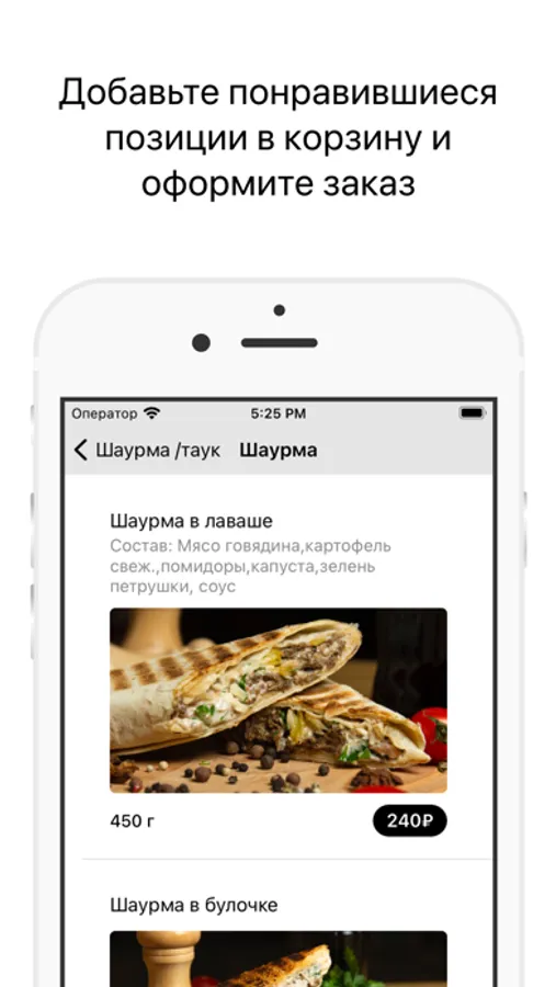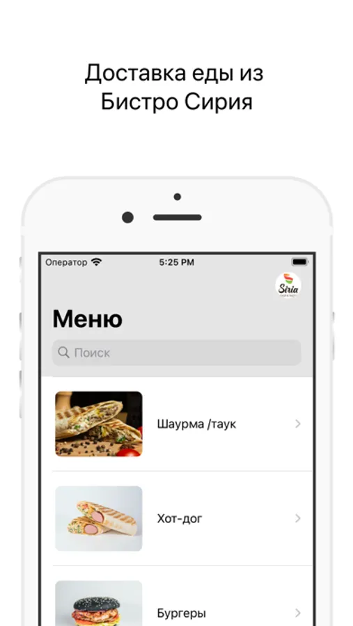 Как сделать заказ в приложении “Бистро Сирия”: выберите понравившиеся позиции из меню, добавьте их в корзину и перейдите на экран оформления заказа (по нажатию на иконку корзины).