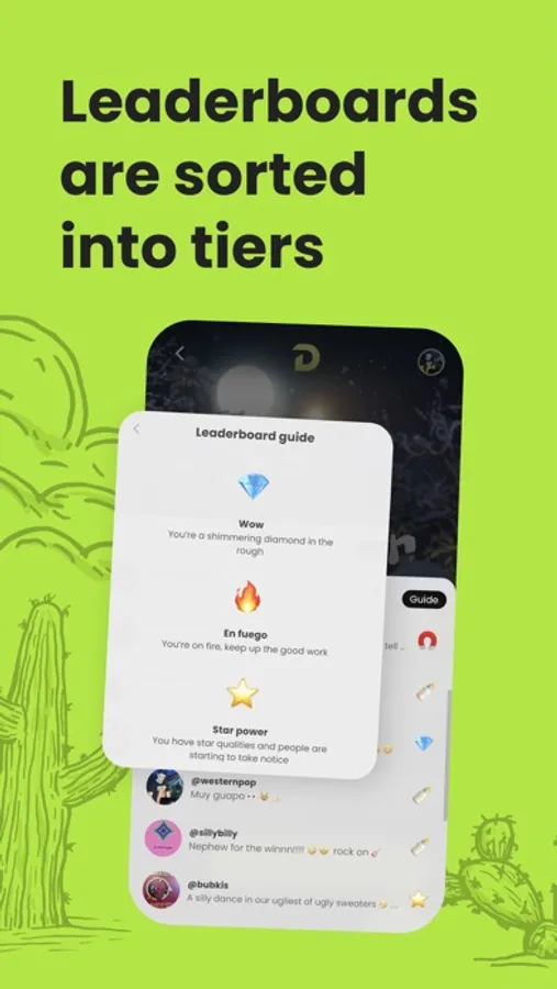 Leaderboards give you information about how Duelers are ranked in any Duel. They're organized into tiers and displayed in a randomized list to avoid bias in scoring. We want every Dueler to have an equal opportunity to be seen and rise up the ranks.