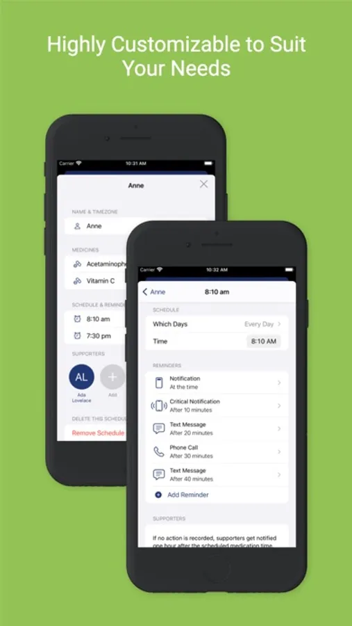 FULLY CUSTOMIZABLE means every feature can be adapted to your scenario … including reminder types, reminder frequency, escalation sequence, message content, supporter notifications, etc.