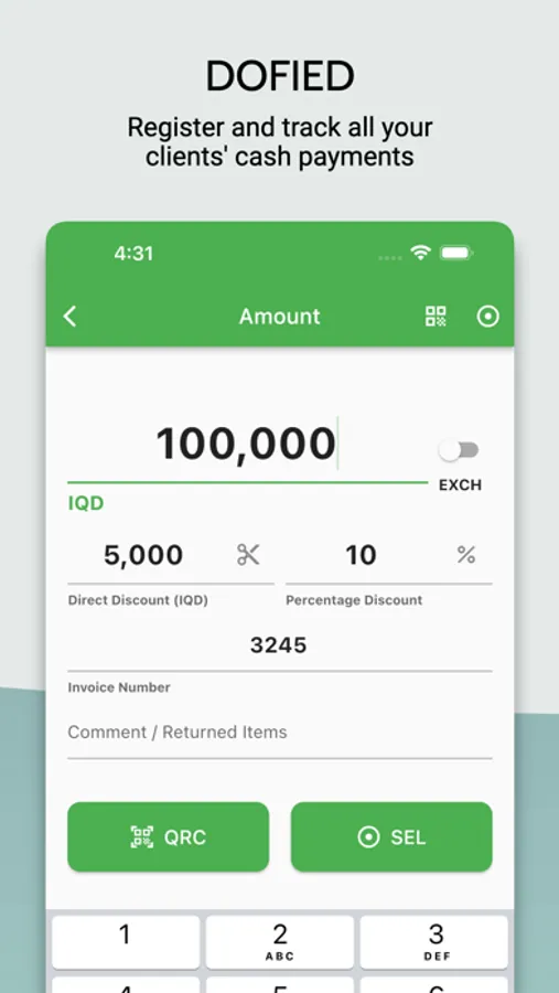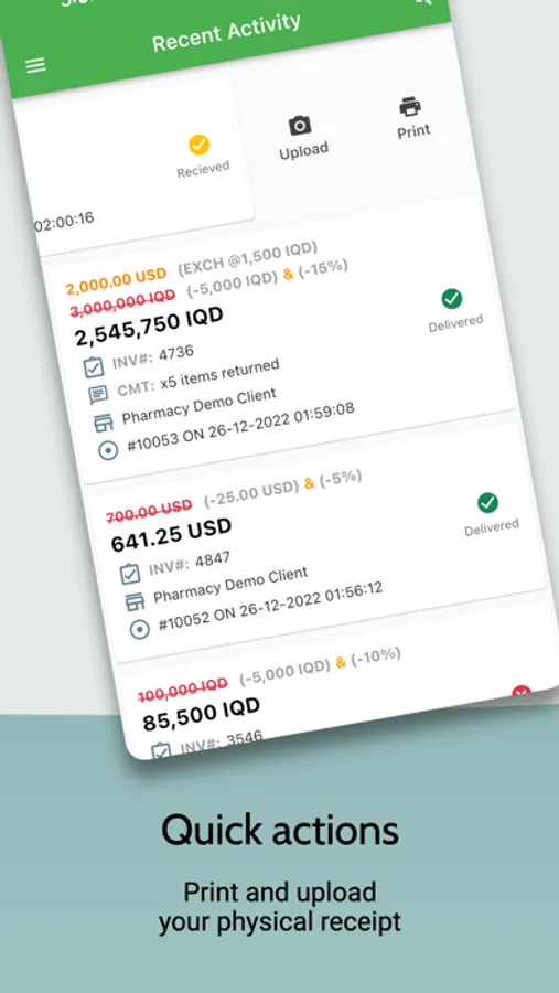 This app is equipped with useful tools for verifying cash payments received by the company's representatives. It includes advanced search capabilities and the ability to print or upload physical receipts. These features make it easy to manage and track cash payments.