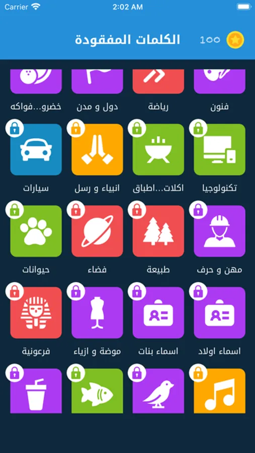 تقدم لعبة الكلمات المفقودة ساعات من اللعب و التسلية حيث تحتوي علي اكثر من ١٠٠٠ كلمة متنوعة مقسمة علي ٢٨ مجموعة مختلفة.