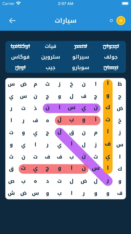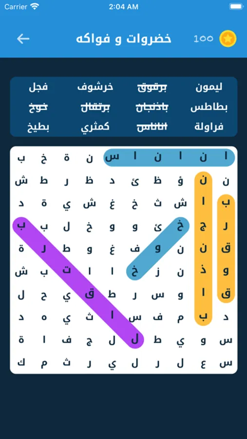 لكي تفوز يجب عليك العثور علي جميع الكلمات المطلوبة و التي سوف تجدها متراصة بشكل افقي او رأسي او قطري ثم تظليلها عن طريق تمرير اصبعك عليها