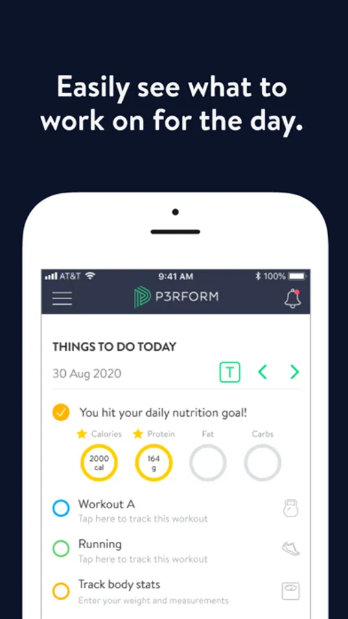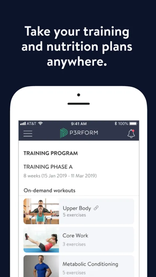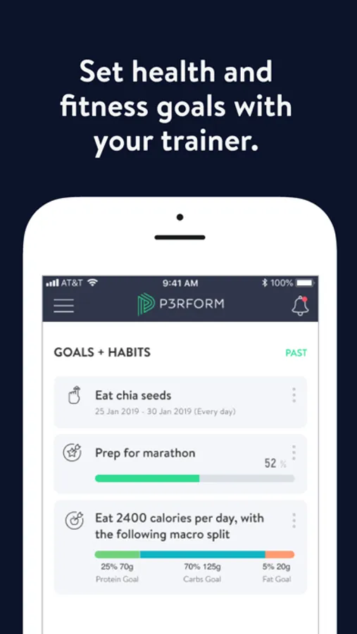 With the P3RFORM App, you can start tracking your workouts and meals, measuring results, and achieving your fitness goals, all with the help of your personal trainer.