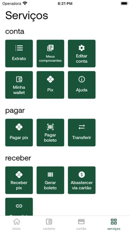 - Pagamento de boletos e tributos.