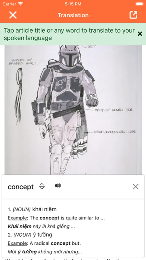 - Tap on any word in the reformatted page to translate new vocabulary with embedded dictionary