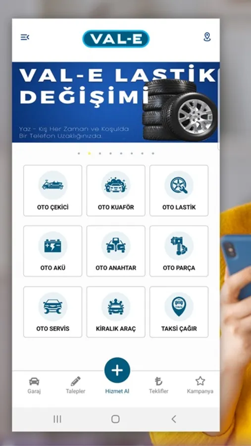 Aracını kaydet, şehrin en iyi firmalarından ihtiyacınla ilgili teklif al. Üstelik ücretsiz! Val-E'yle tüm hizmetler cebine gelsin. Ayrıca kiralık araç ve taksi gibi ihtiyaçlarında da Val-E yanında. Tıkla en iyi seçenek sana ulaşsın.