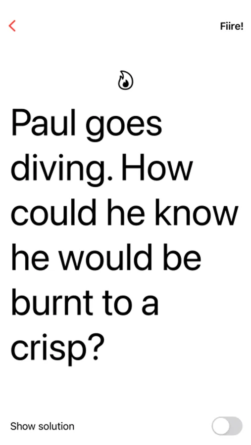 A minimum of 2 players is needed to play the game. One is designated the game master and is allowed to read the solution, while all the other players must try to guess what the mystery is. The game starts with the GM reading the short riddle linked to each situation. Afterward, the players can ask the GM any yes or no questions. The GM cannot respond with anything other than yes or no, but they can refuse to answer or say that the question is irrelevant or misleading. The game contains 56 different mysteries to solve.