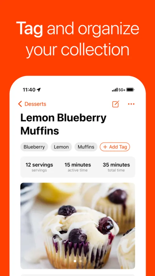 Tag your recipes with things like "Vegetarian", "Dessert", or "Baking" so you can easily find the perfect recipe for any occasion.