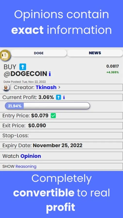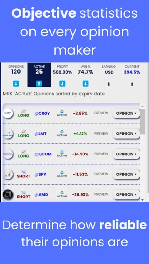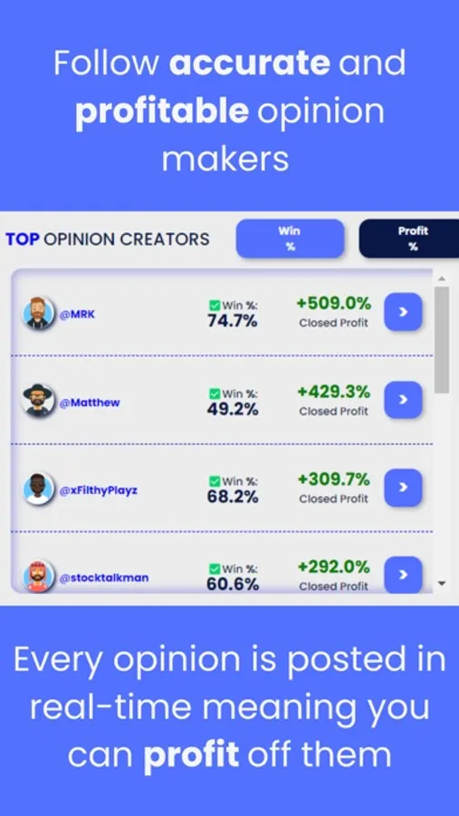 The platform implements a new idea that allows users to see the reliability of "Opinion Creators". Users can view "Wins" "Losses" "Profitability" and "Total STM Points" before seeing an opinion.