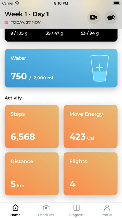 The app integrates with Apple Health to show your daily activity - distance, steps, active energy, and flights to help you better achieve your goals.