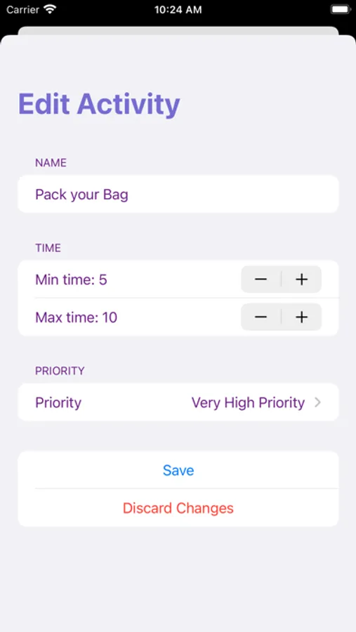 - Finally view your auto-generated guidelines to how long you should spend on each activity based on your priority and timings you set!