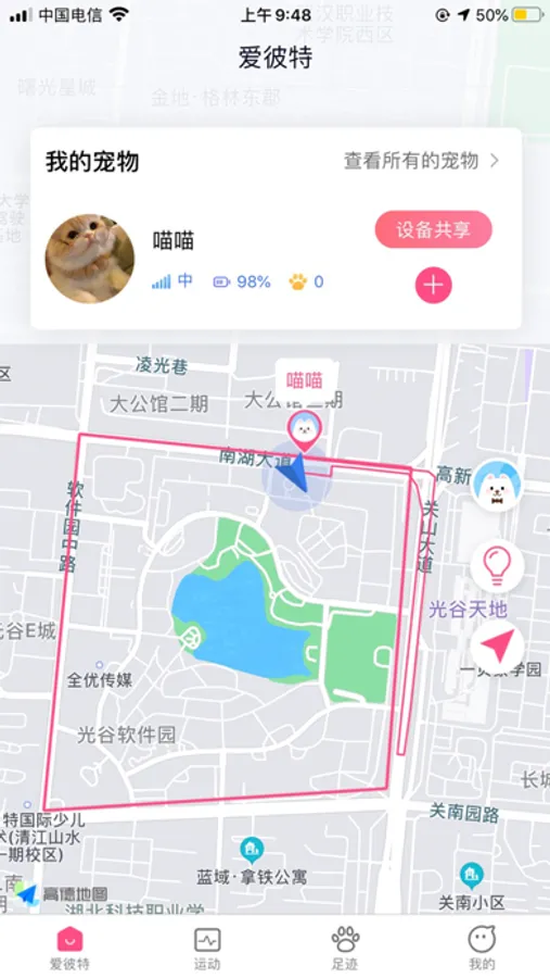 AIPITE宠物项圈是针对有AIPITE宠物智能项圈硬件设备的用户,提供可配合宠物智能项圈使用的包括定位、运动、能量消耗等实时监测功能的程序。能够实现对宠物的实时定位,同时能监测宠物的运动、休息、能量消耗等数据情况,很好的解决了养宠人士日常中管理宠物的健康、防丢失等核心问题。