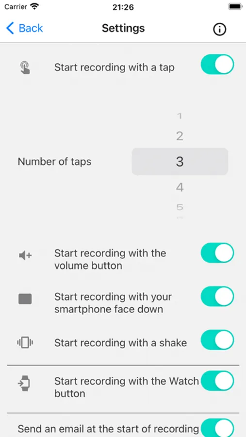 ● Notification of recording start by vibration (OFF setting and vibration pattern selection are also possible)