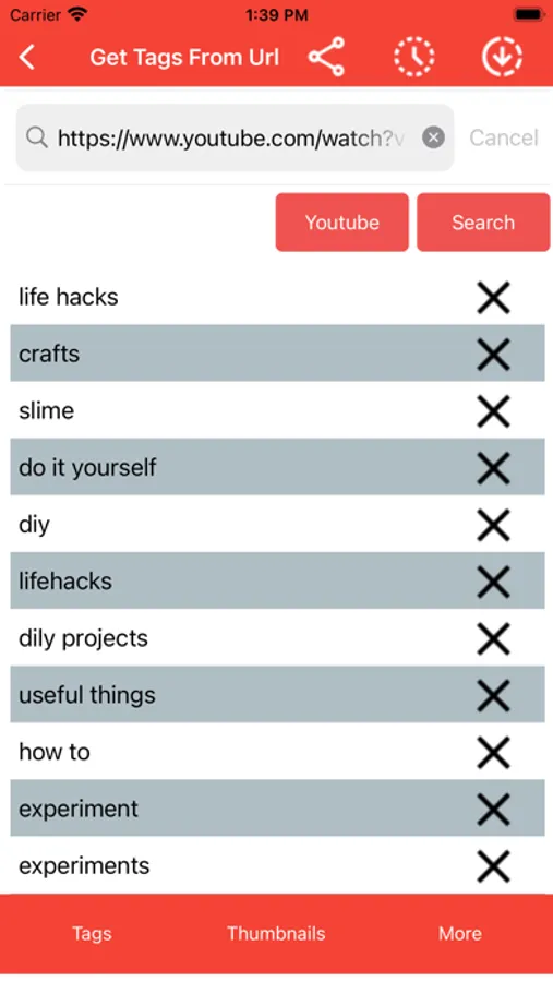 2. Get Tags From Url - Get all the tags of any video by providing a url or picking a video.