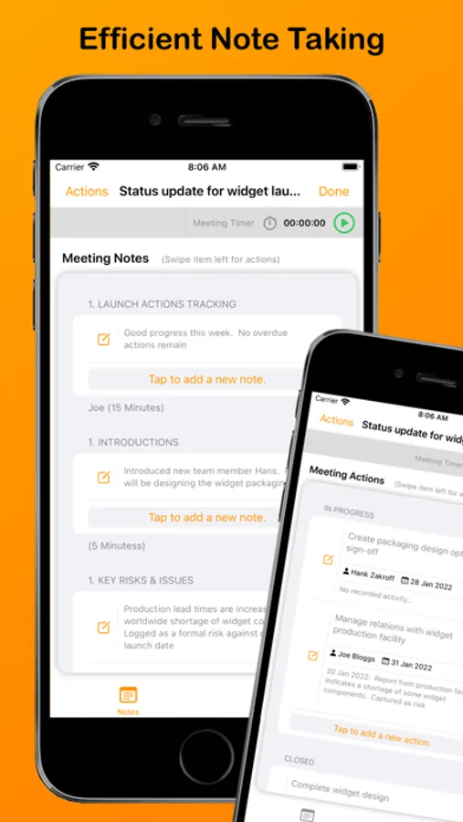 Manage meetings like a professional! Quickly capture notes and actions. Distribute elegant agendas and meeting minutes at the touch of a button. Supports meeting series, assignment to groups and organisation of contacts/attendees.