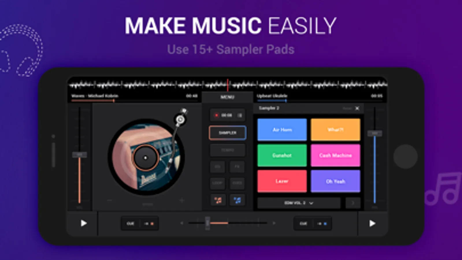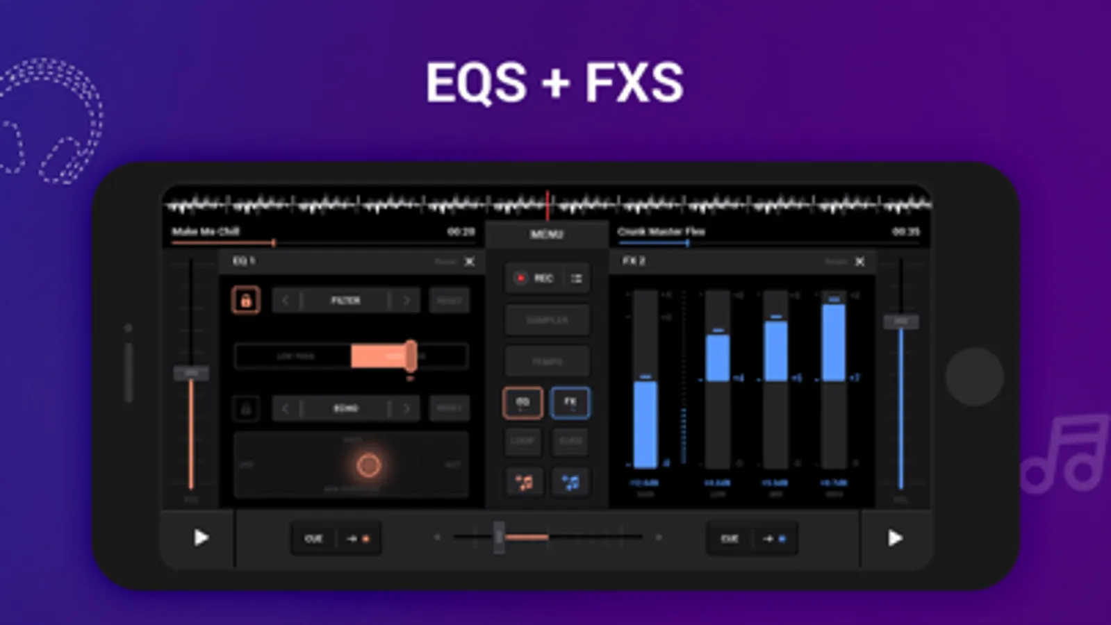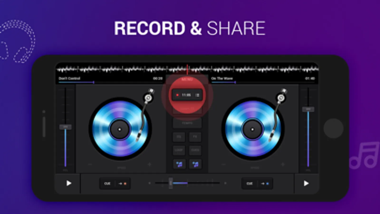 • Live record your mixes with the built-in recorder in DJ Music Player