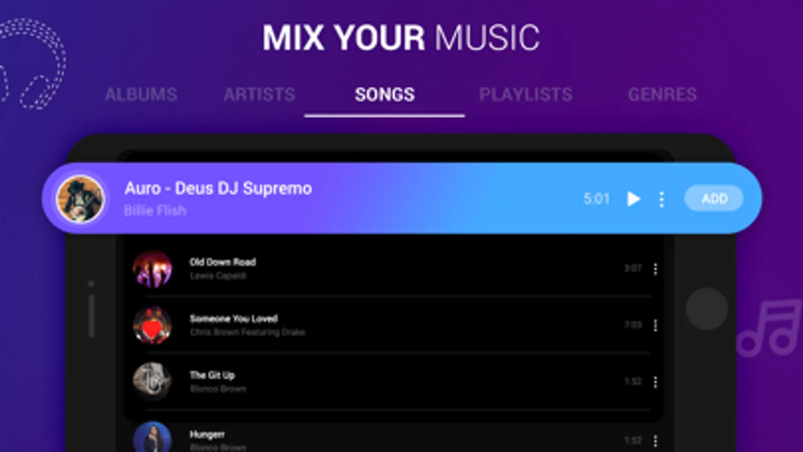 • Mixer with playlist, equalizer, volume controls and many features in DJ Music Player