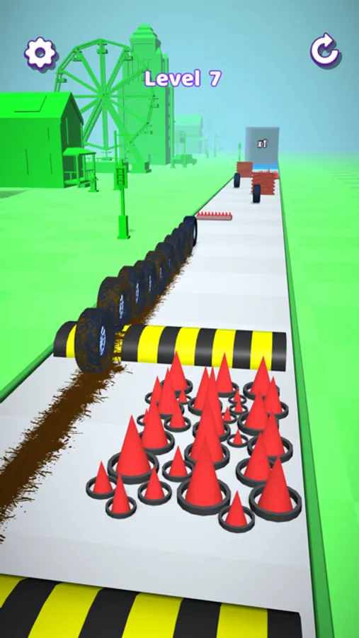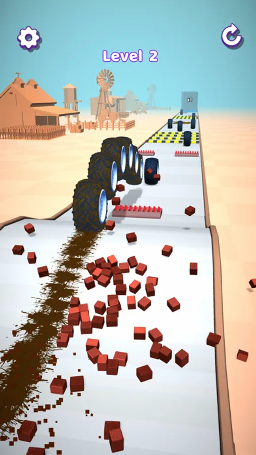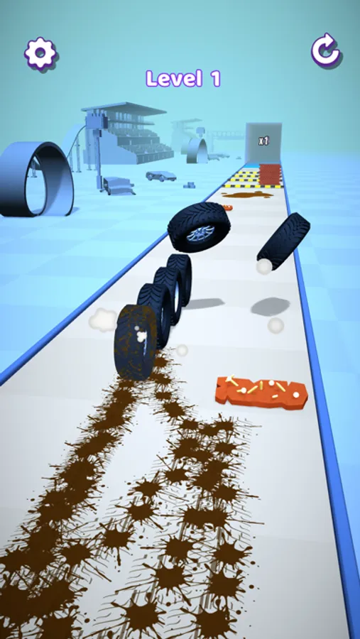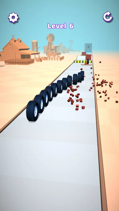 Knock down walls, fly between platforms and complete the course before hitting obstacles and blowing up the wheels.