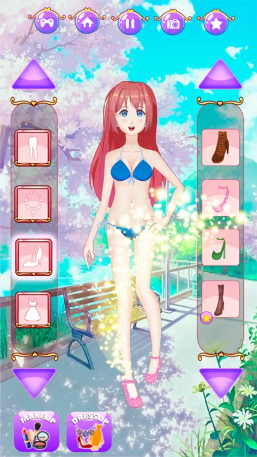 Choose the best dresses and nice makeup for your anime girl to make her beautiful and do a complete makeover for her to improve her personality in this anime dress up game for girls and become the best fashionista in the town.