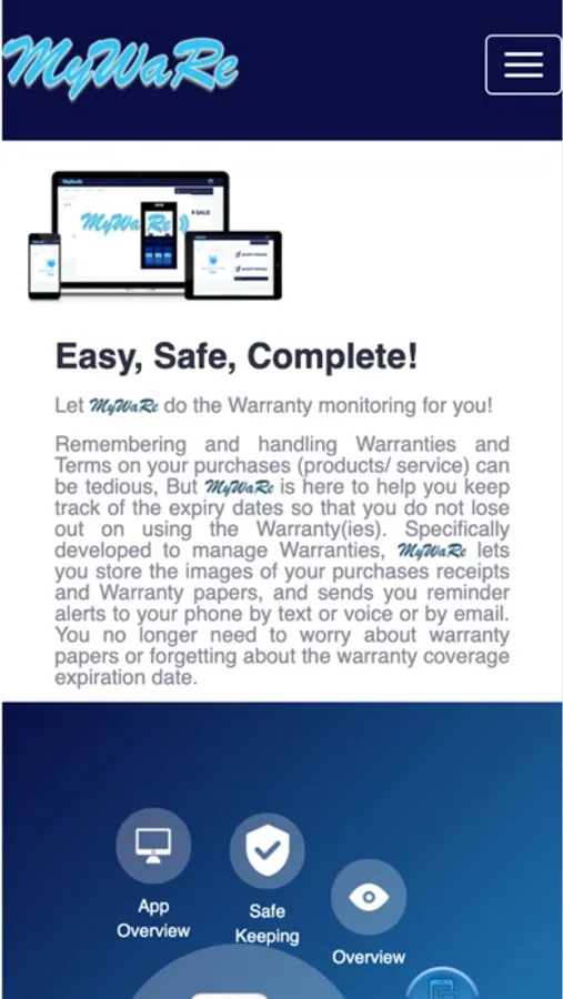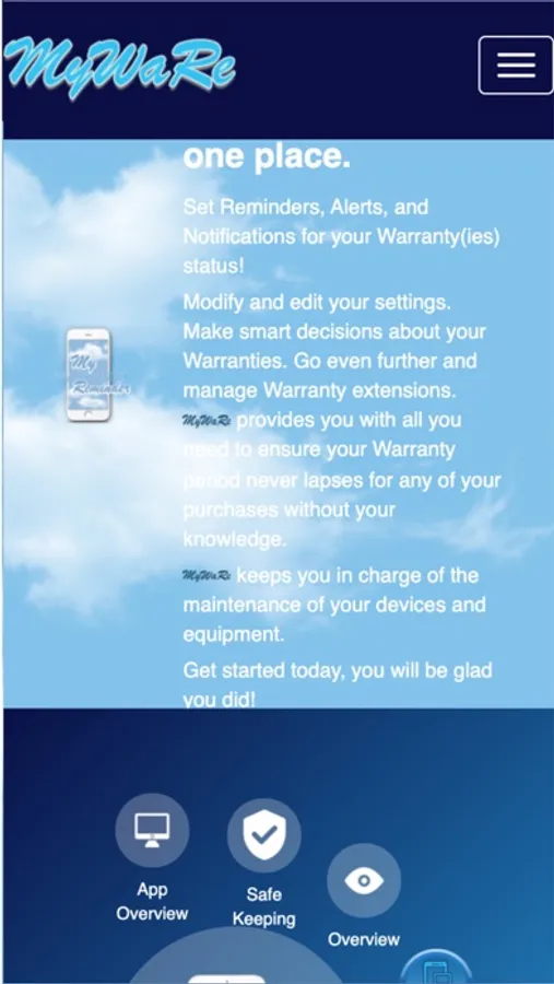 Let MyWaRe keep all your set-up products, services, etc., warranties so you can be rest assured of being within reach when you need information on your warranty status.