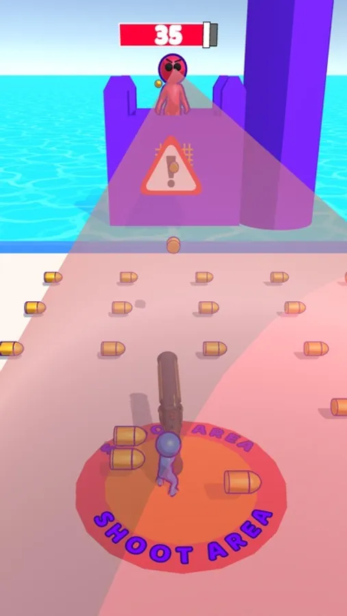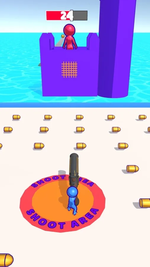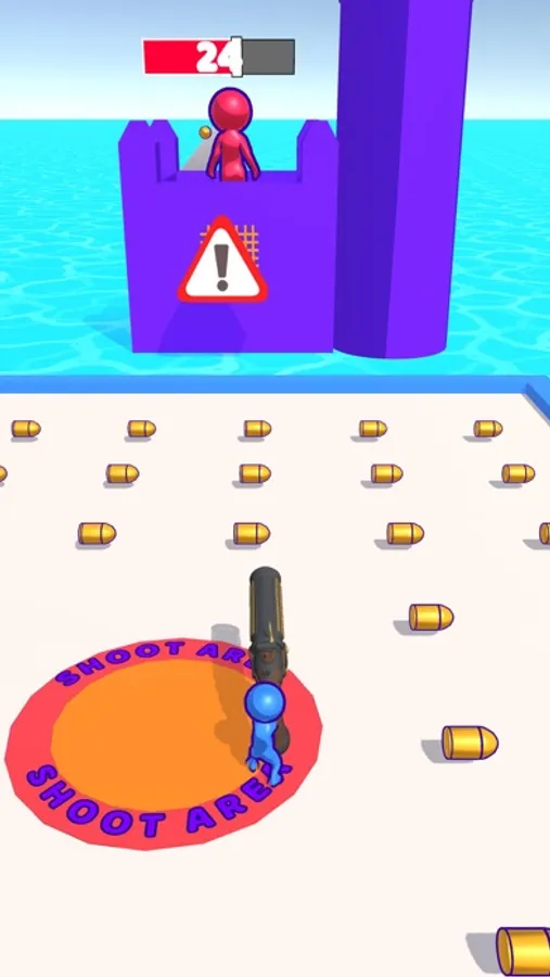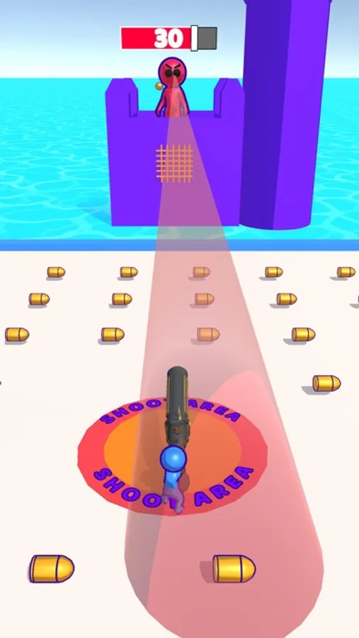With the enemy's back facing you, collect enough bullets and go to the shooting range before the enemy turns in front of you. Shoot until you run out of bullets.