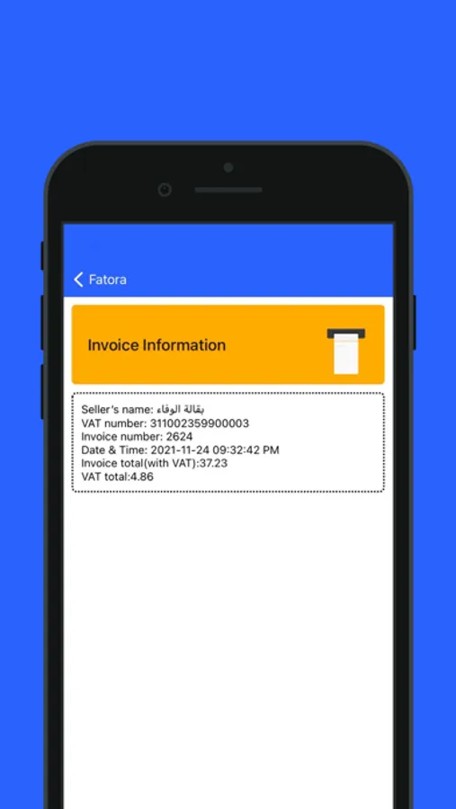 Fatora App to save and retrieve the invoices that you take from any store you purchase from, whether a supermarket, restaurant, or any store that provides an electronic invoice service using the QR code. Just point the mobile camera at the encryption code.