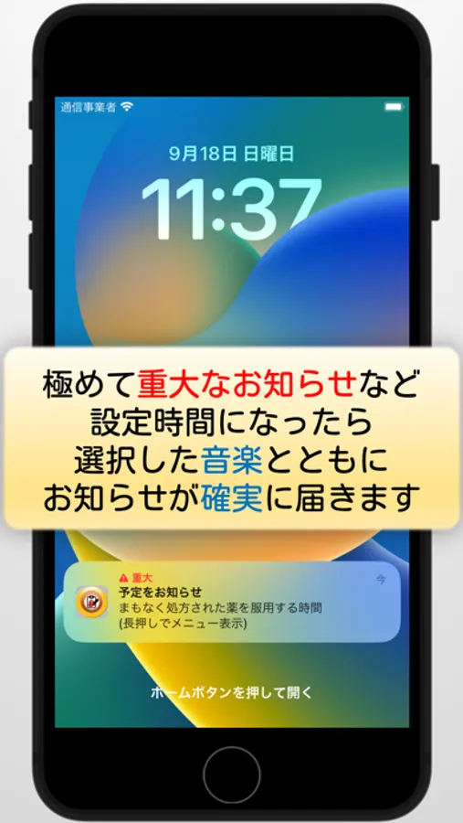 予定をリストに入力、時間になったら好きな曲とともに通知をするアプリです。