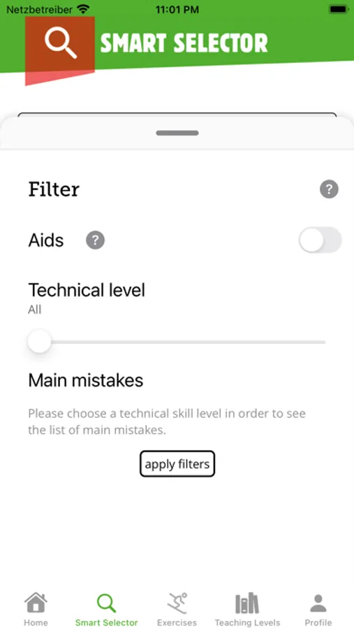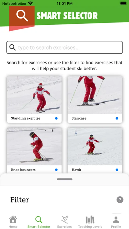 The highlight of the snow sports app is the smart selector. The ideal exercise can be found in no time at all thanks to intelligent filters. This allows you to find the right exercise to help your students, all within one lift ride.